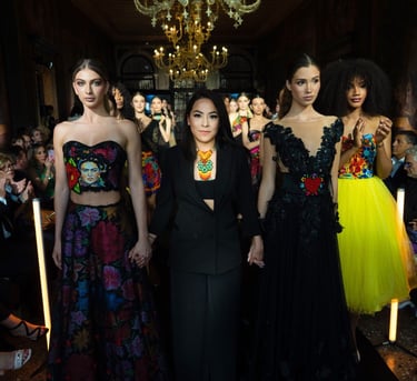 Diseñadora de alta moda mexicana que une elegancia italiana con cultura mexicana